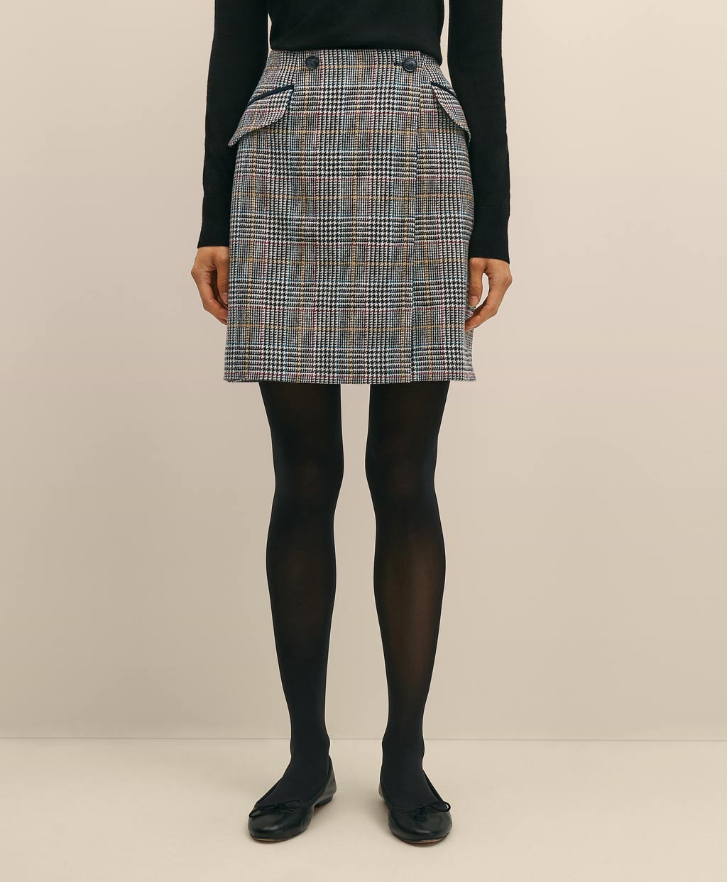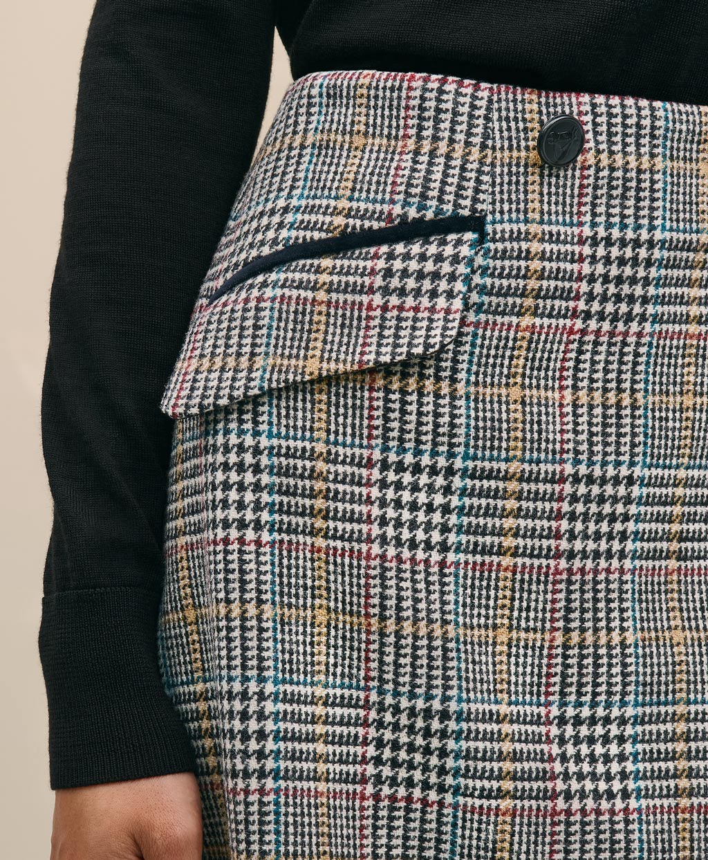 ウール マルチカラーチェック ラップスカート