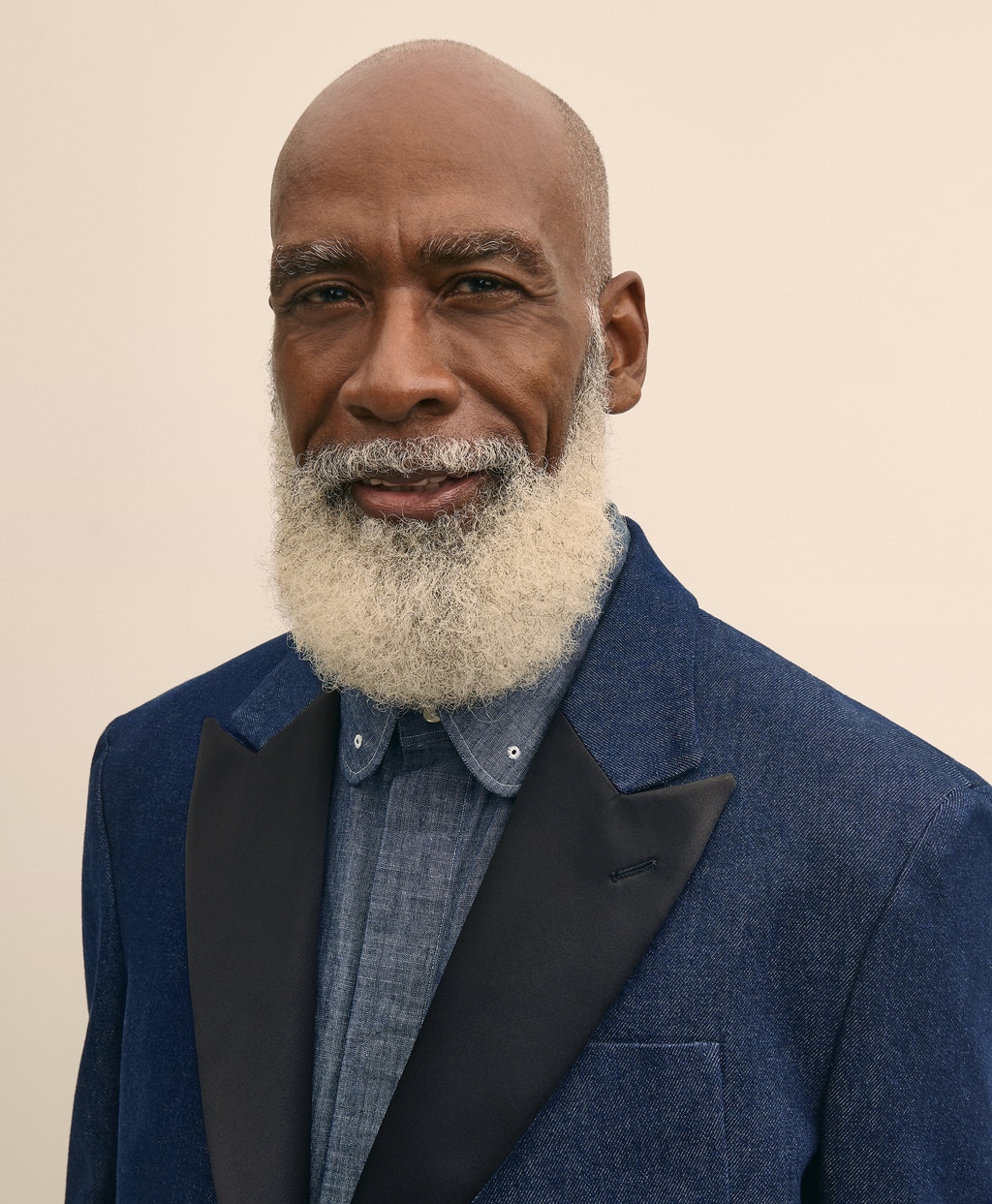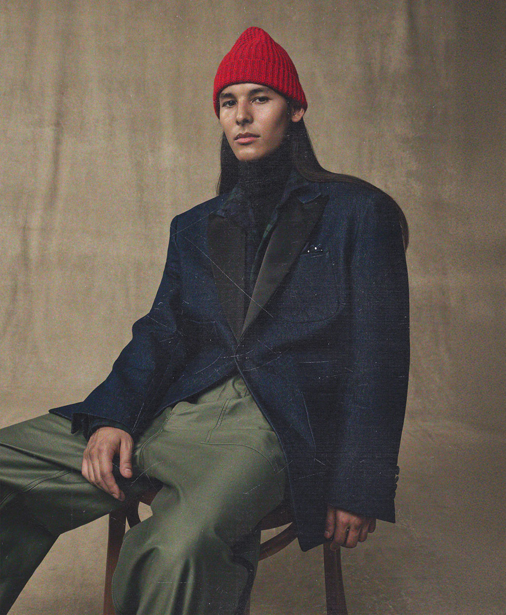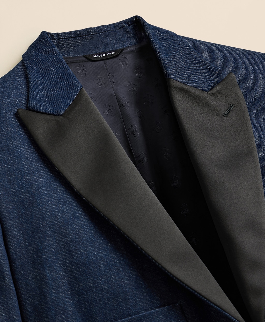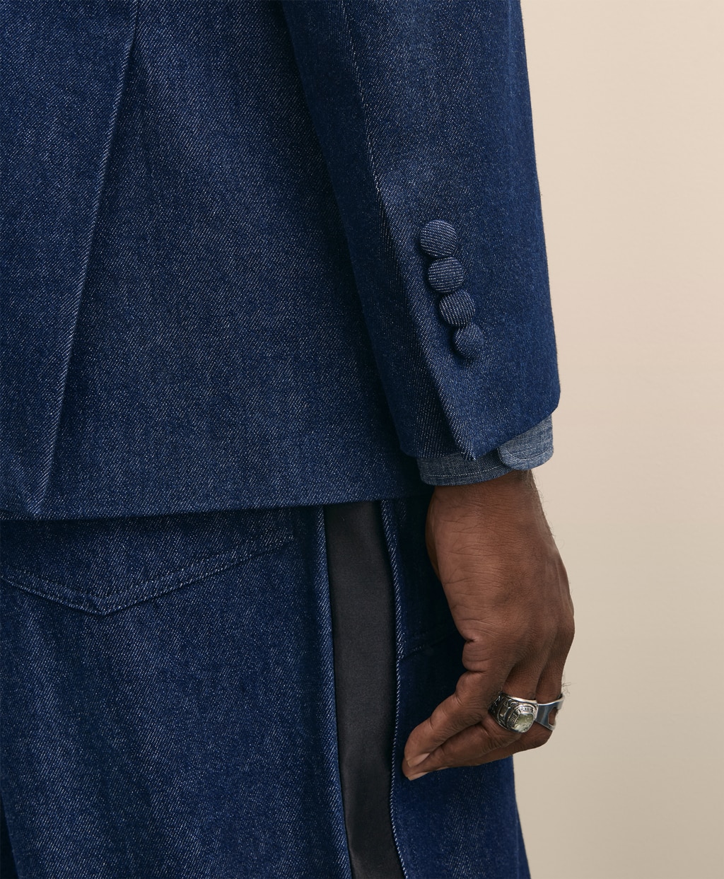 ワークウェア由来のデニム生地で仕立てられたタキシードジャケット