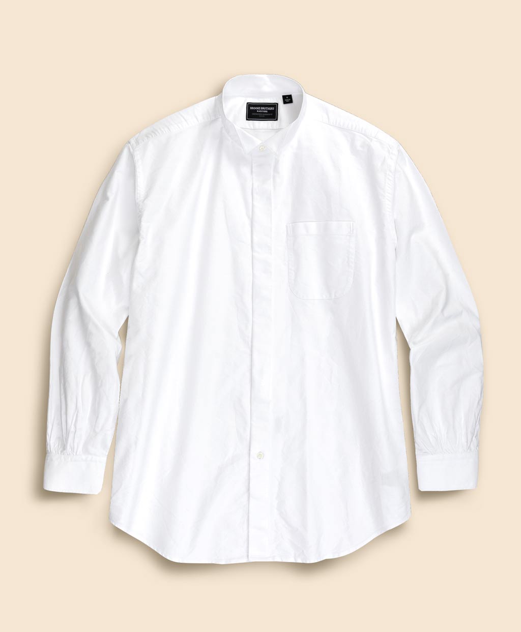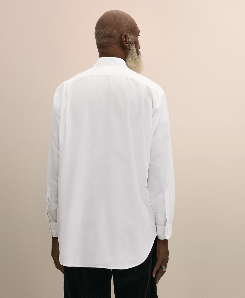 ボウタイやアスコットタイといったフォーマルなタイを美しく見せることに特化したウイングカラーシャツをベースに、アメリカントラディショナルを語る上で欠かせないボタンダウン(ポロカラー)シャツの定番素材、オックスフォード生地を用いて仕立てました。ざっくりとしたラフな風合いのオックスフォード生地を用いることで、フォーマルなディテールに相反する要素が組み込みまれ、コントラストの効いたルックスを生み出しています。本コレクションのコンセプトを凝縮した一着です。