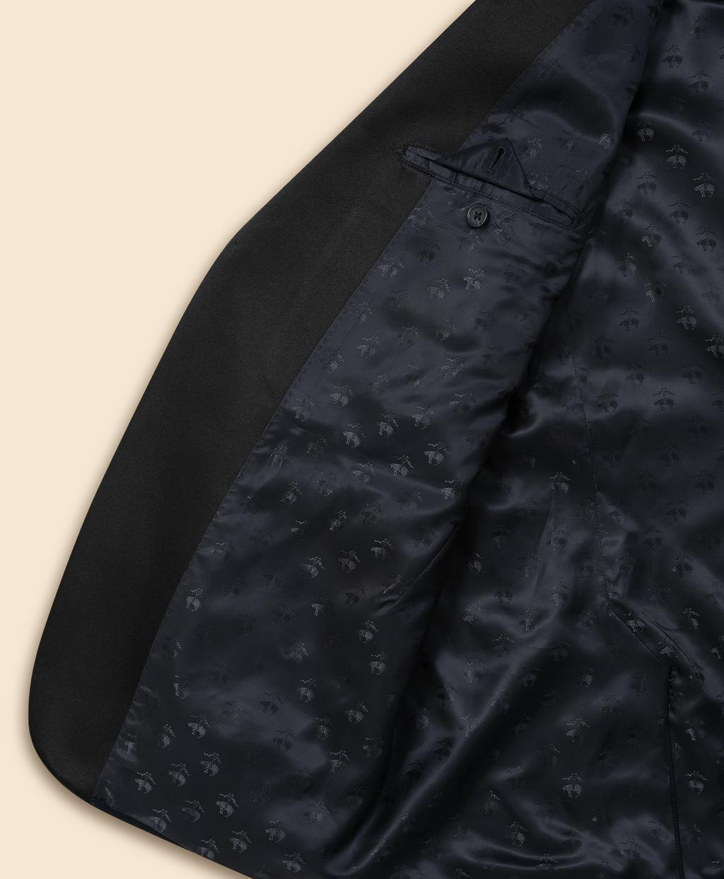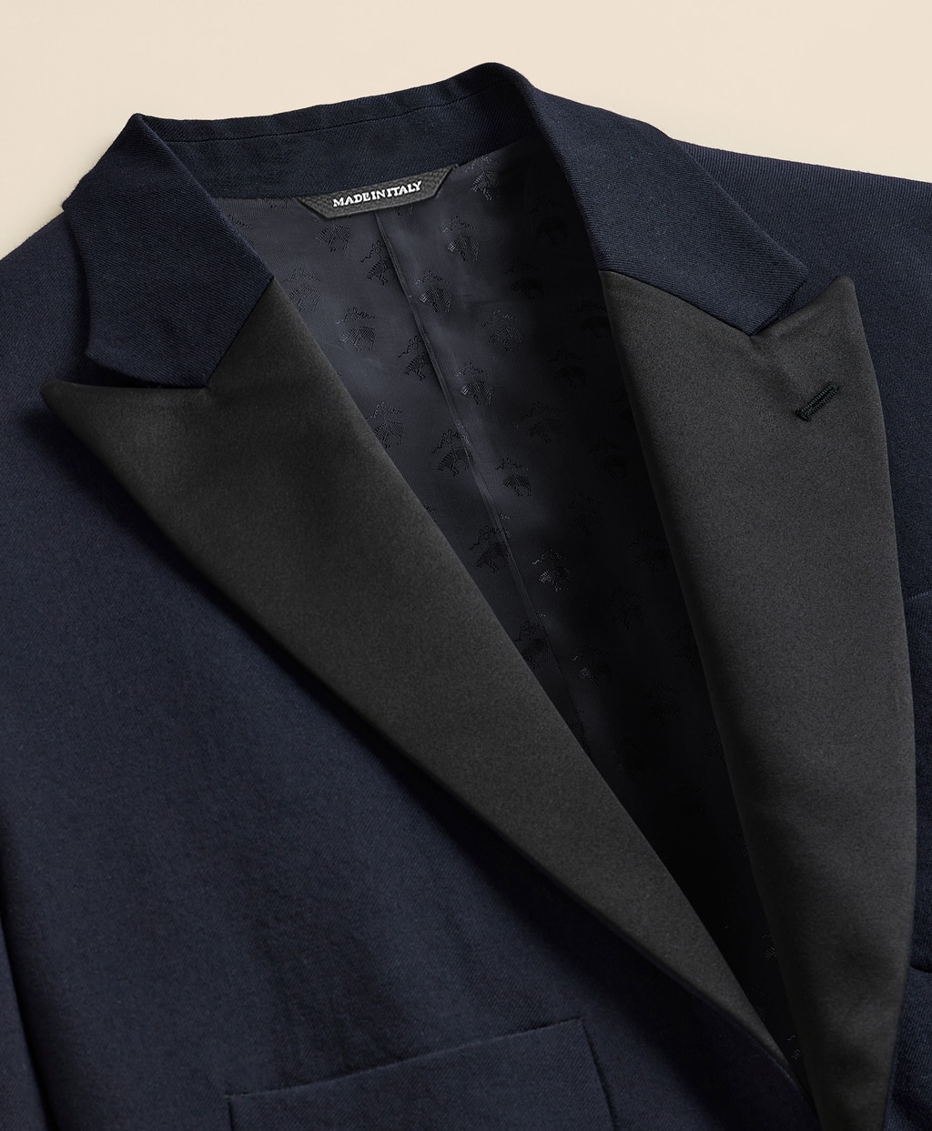 ブレザーなどのスポーツコートに使用される事の多いウールサージ生地で仕立てられたタキシードジャケット