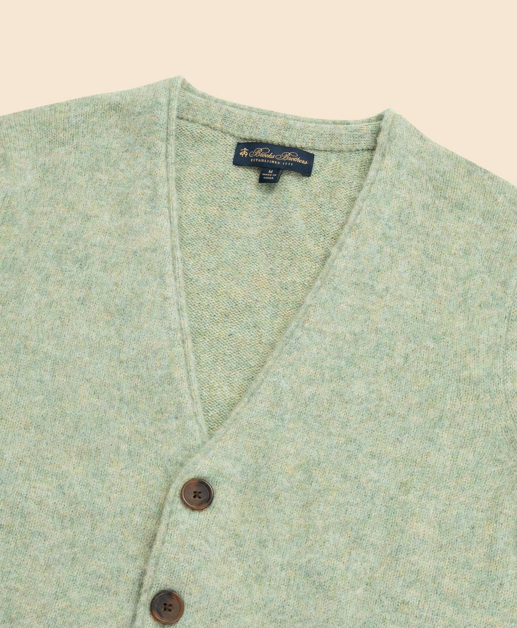 英国Knoll社製のウール糸を使用しふんわりと編み上げたVネックカーディガン