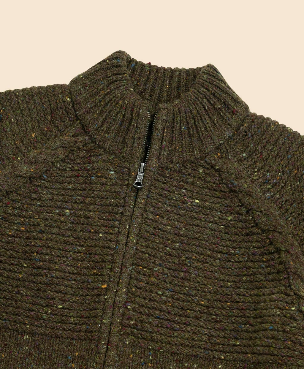 アイルランドの伝統的なドネガルヤーンで編み上げたフルジップセーター