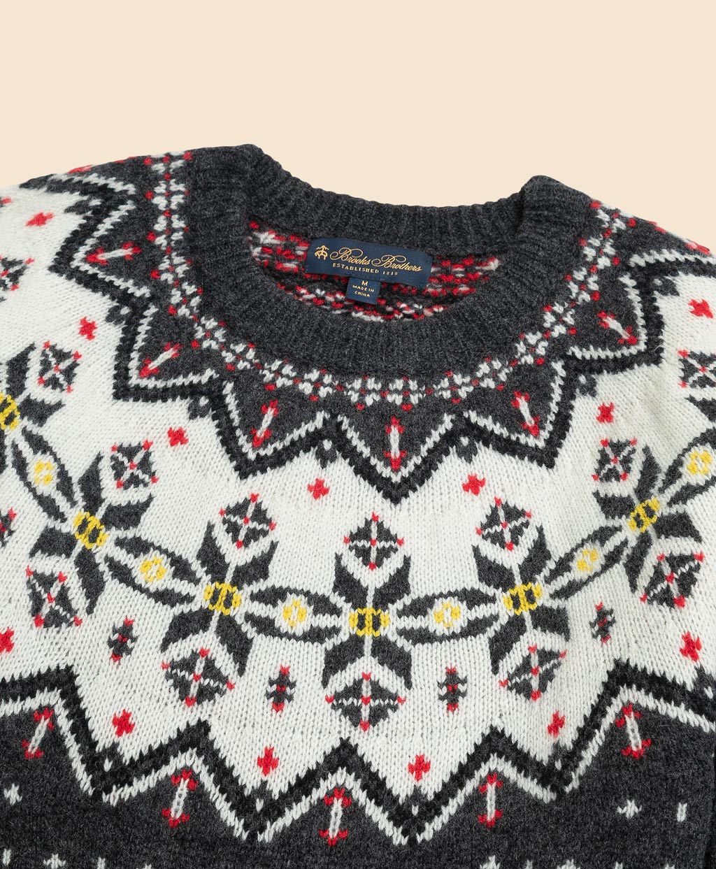 ホリデーシーズンを盛り上げるクラシックなフェアアイル柄のラムズウールセーター