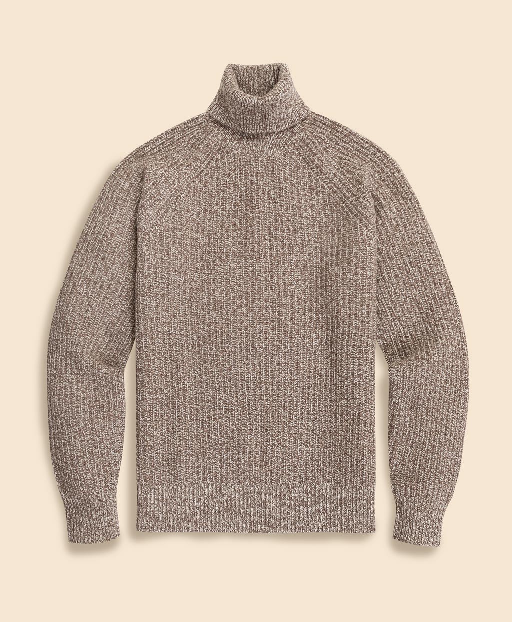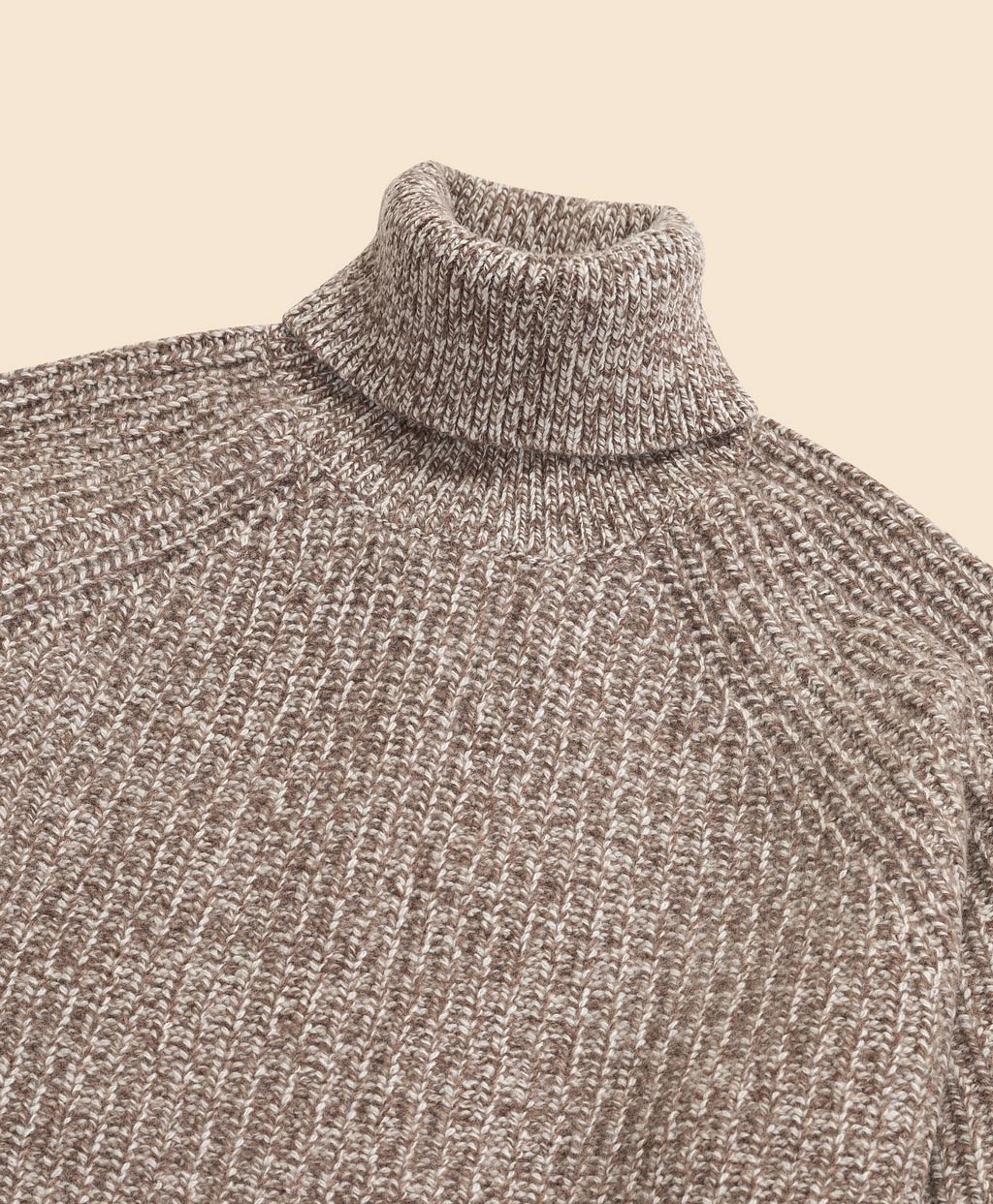 カシミヤブレンドのメランジ糸を使用して編み上げた味わいのある表情が魅力のタートルネックセーター