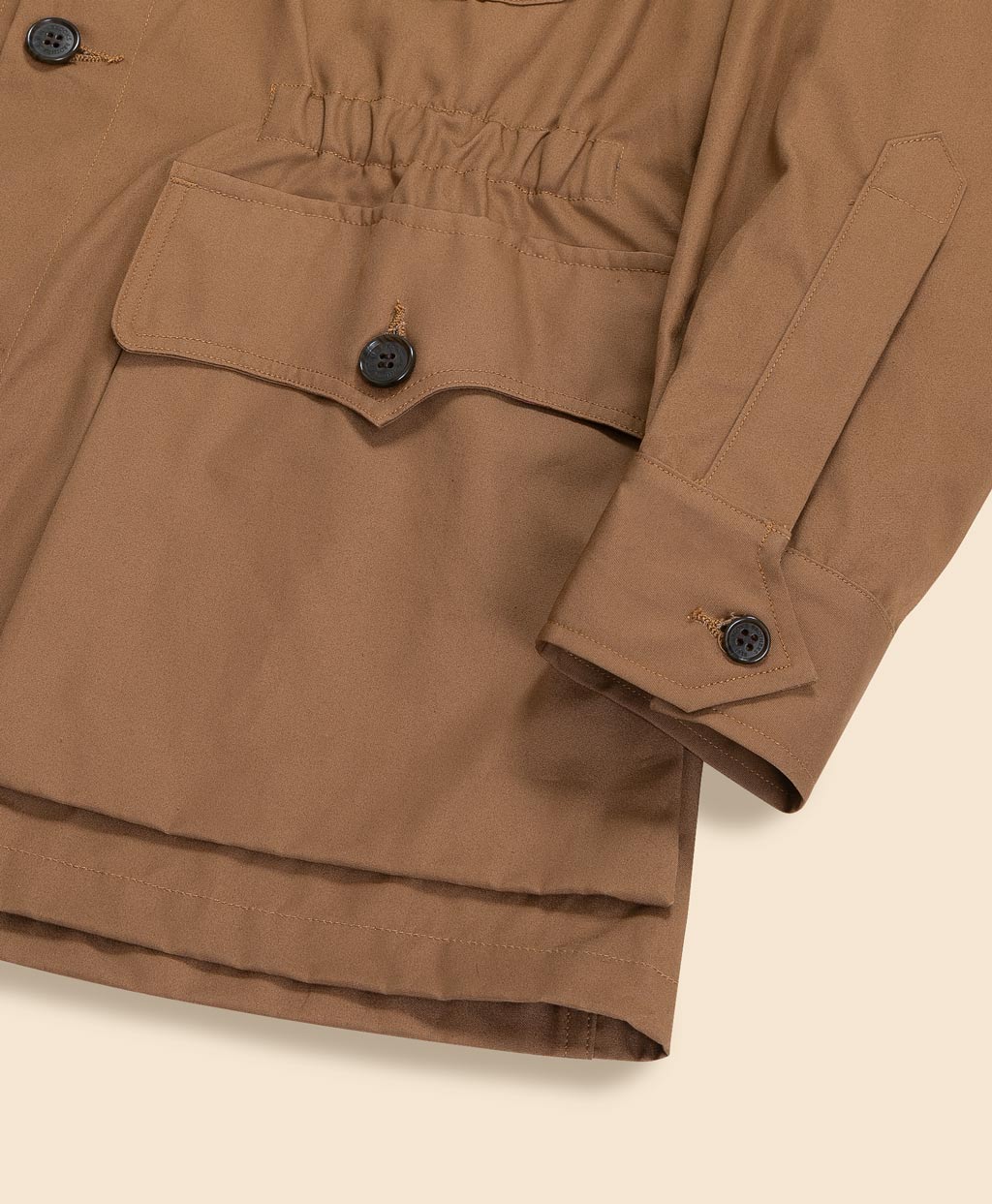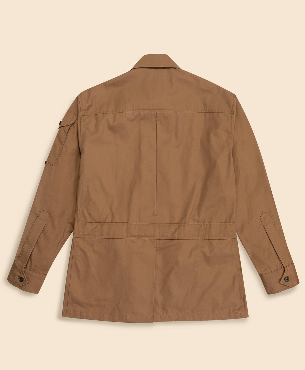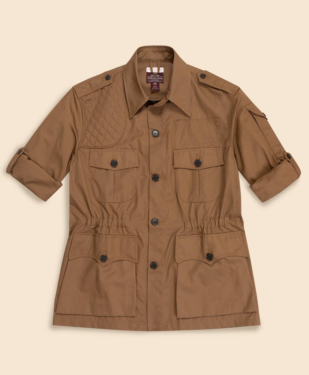 『老人と海』『誰がために鐘は鳴る』等の作品で知られるアメリカの文豪、ヘミングウェイがWillis & Geigerに作成を依頼し誕生した「ヘミングウェイ・ブッシュジャケット」を再現しています。狩猟、釣り、探検をこよなく愛したヘミングウェイの要望を随所に取り入れ、ブッシュ(茂み、灌木、未開の地)の名の通り、過酷な環境での活動に適した耐久性の高いブッシュポプリンを用いてアメリカ国内で縫製しました。カーキベージュとネイビーの2色展開。いずれのカラーもブルックス ブラザーズが別注したコラボ限定のエクスクルーシブカラーです。
