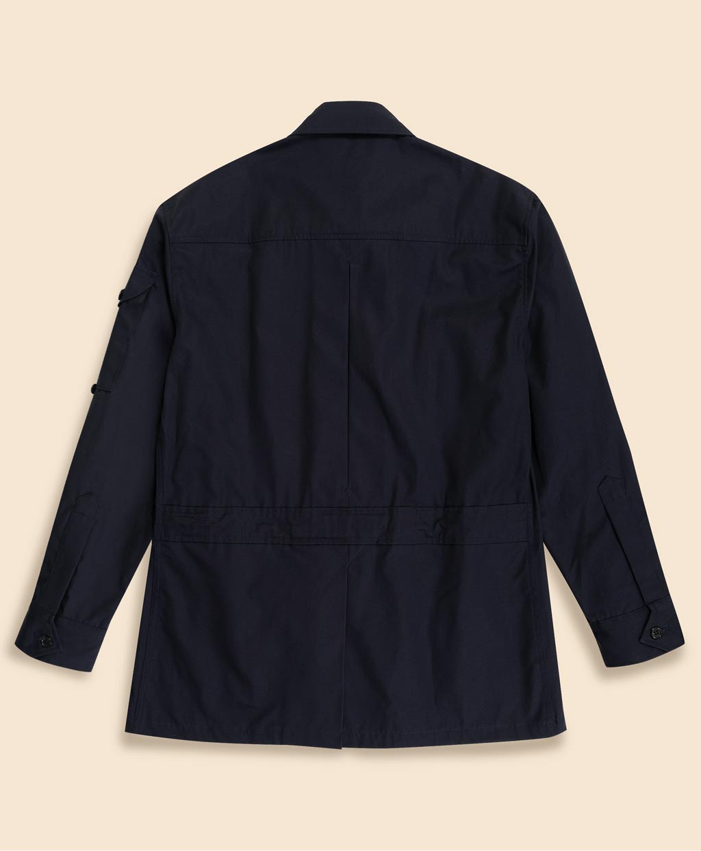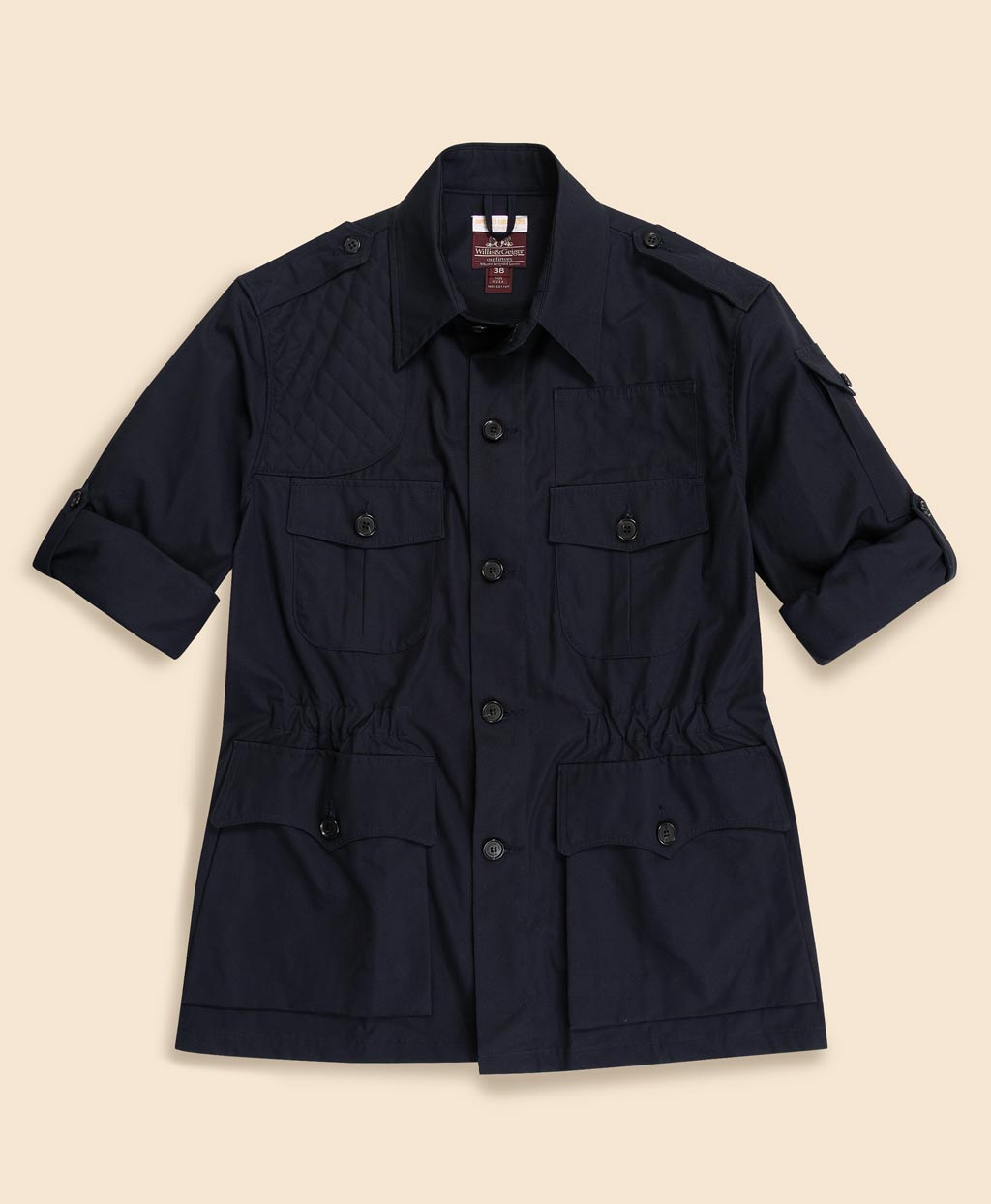 『老人と海』『誰がために鐘は鳴る』等の作品で知られるアメリカの文豪、ヘミングウェイがWillis & Geigerに作成を依頼し誕生した「ヘミングウェイ・ブッシュジャケット」を再現しています。狩猟、釣り、探検をこよなく愛したヘミングウェイの要望を随所に取り入れ、ブッシュ(茂み、灌木、未開の地)の名の通り、過酷な環境での活動に適した耐久性の高いブッシュポプリンを用いてアメリカ国内で縫製しました。カーキベージュとネイビーの2色展開。いずれのカラーもブルックス ブラザーズが別注したコラボ限定のエクスクルーシブカラーです。