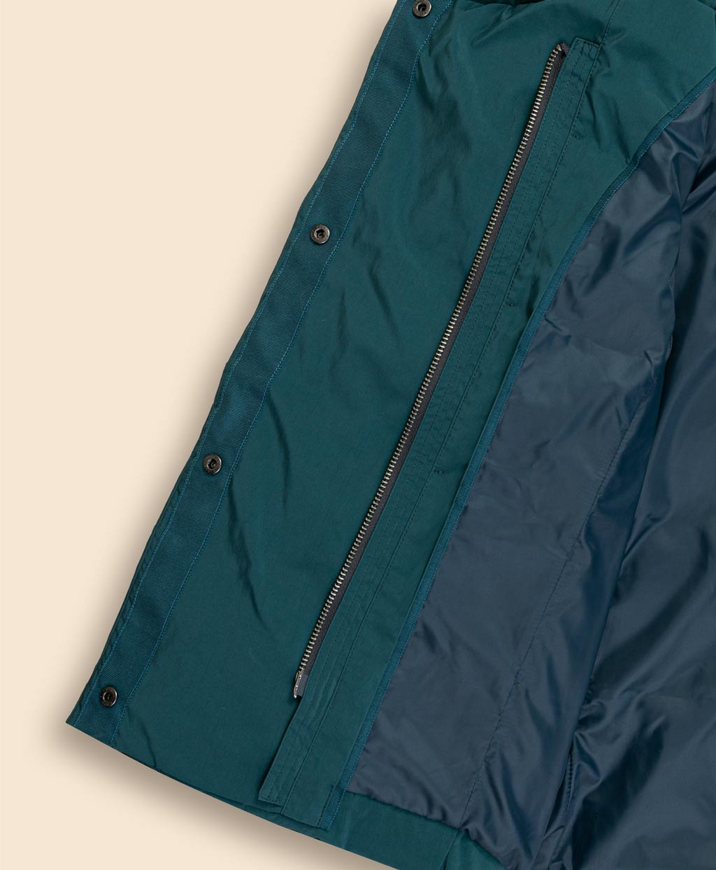 ■後ろ側のみ着丈をやや長めに設定することで、全体の軽快なバランスはそのままに保温性を向上させました。