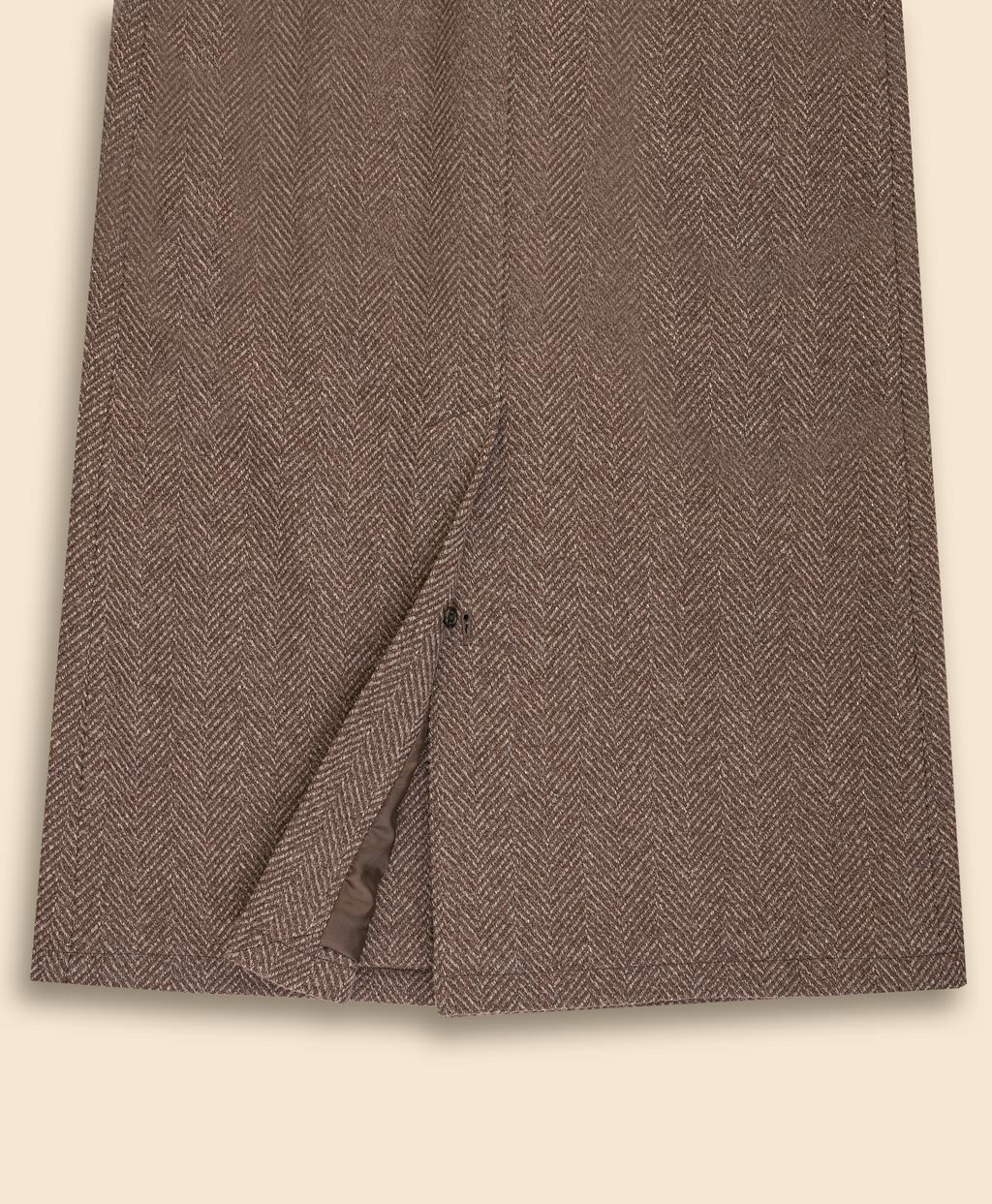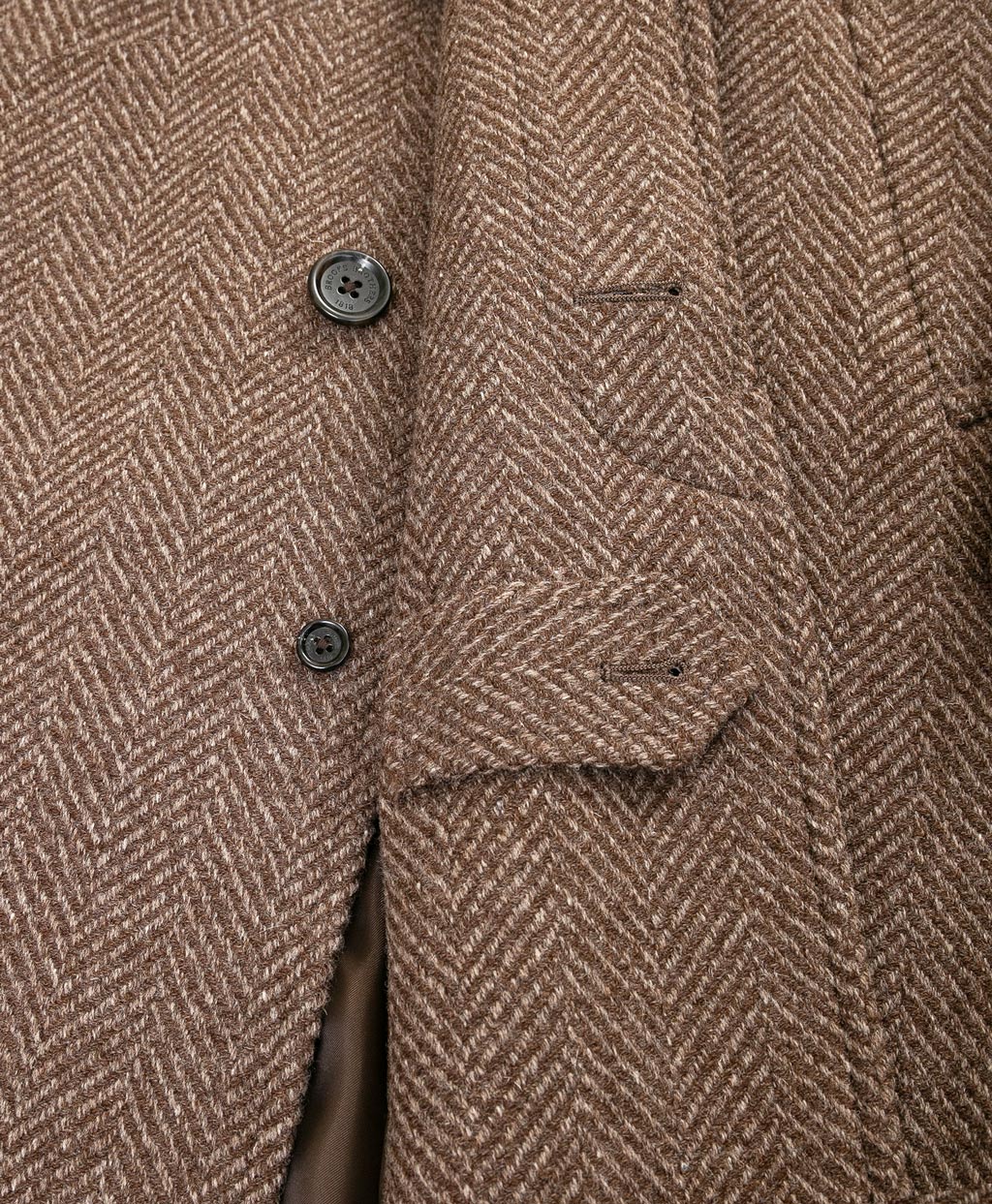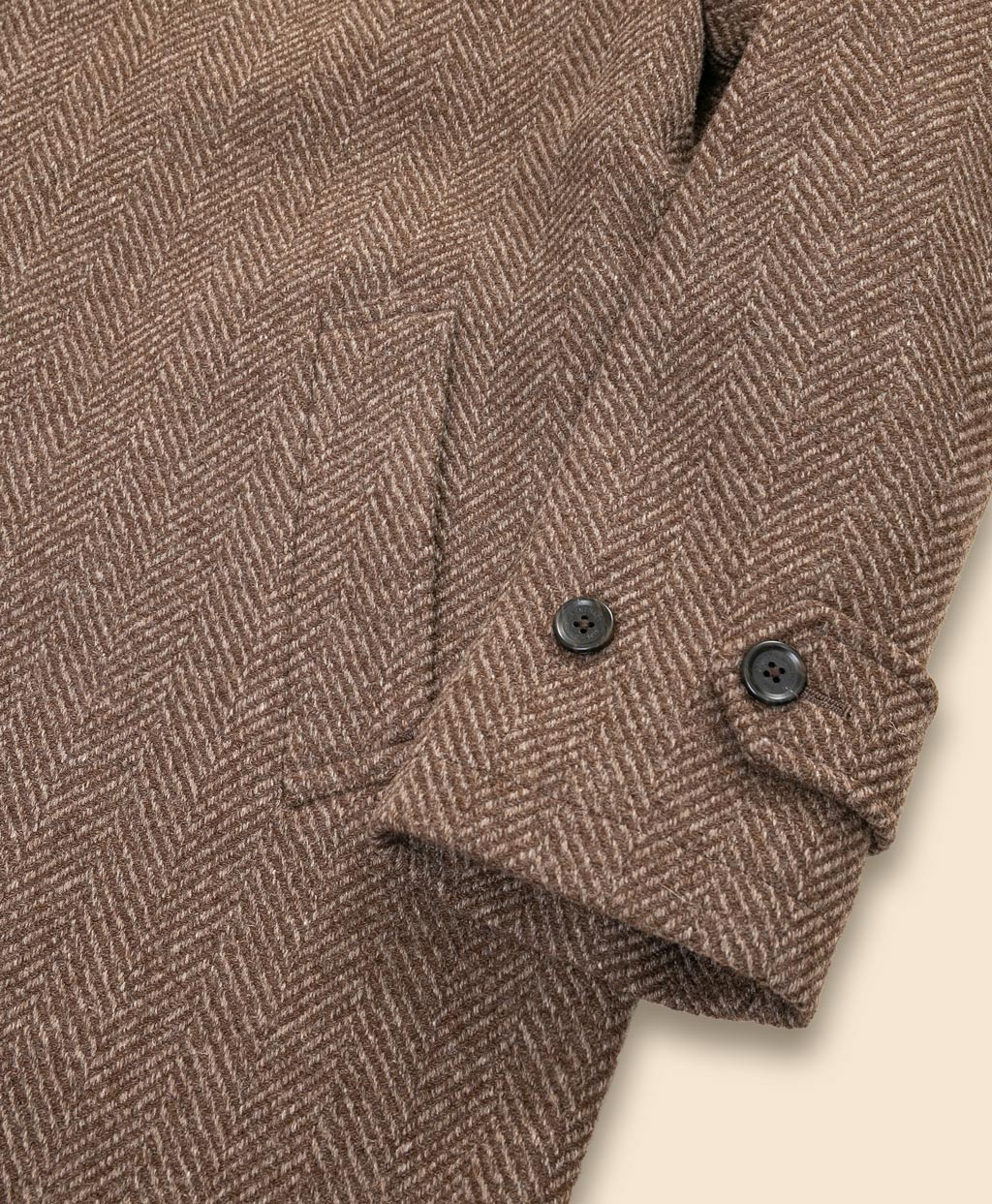 化学染料による染色や漂白を一切行わず、羊毛が本来持っている自然の色をそのまま活かして作られた無染色ウール素材を使用。染料による単色の糸では表現できない、羊毛本来の濃淡が織りなす豊かな色彩と奥深い表情を宿しています。また、一般的に羊毛は白色のものが大半を占めるため、このコートのようにブラウンの有色羊毛は全体の供給量が少なく貴重な素材です。大柄のヘリンボーン織りが生み出す風格と普遍的なバルカラーのディテールが素材の個性を際立たせ、冬のコーディネートに落ち着きのある大人のエレガンスを纏わせます。永くご愛用いただくほどに、その真価を実感いただけるコートです。