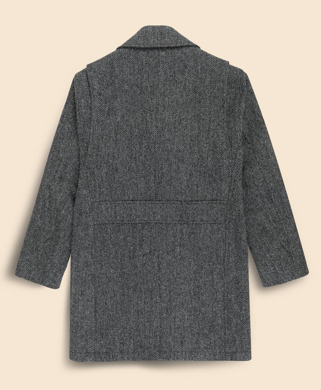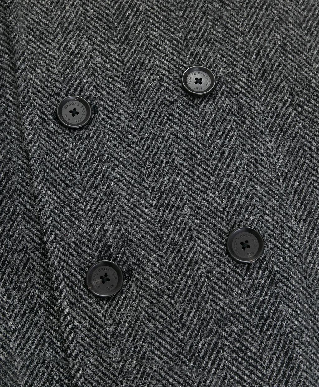 北アイルランドのアルスター地方が起源とされるアルスターコートです。ダブルブレストの重厚なフロントと、上衿と下衿が同等のサイズで仕立てられたアルスターカラーが特徴。生地には、スコットランド・ハリス島とその周辺の限られた地域で、伝統的な手法によって織り上げられたハリスツイードを使用。ブラック/ホワイトの糸を複雑に織り上げることで表現されたグレーのヘリンボーン柄は奥深い色合いを宿し、時を重ねるごとに味わい深い経年変化をお愉しみいただけます。卓越した耐久性と防寒性を備え、永年の着用に耐えうる一着です。