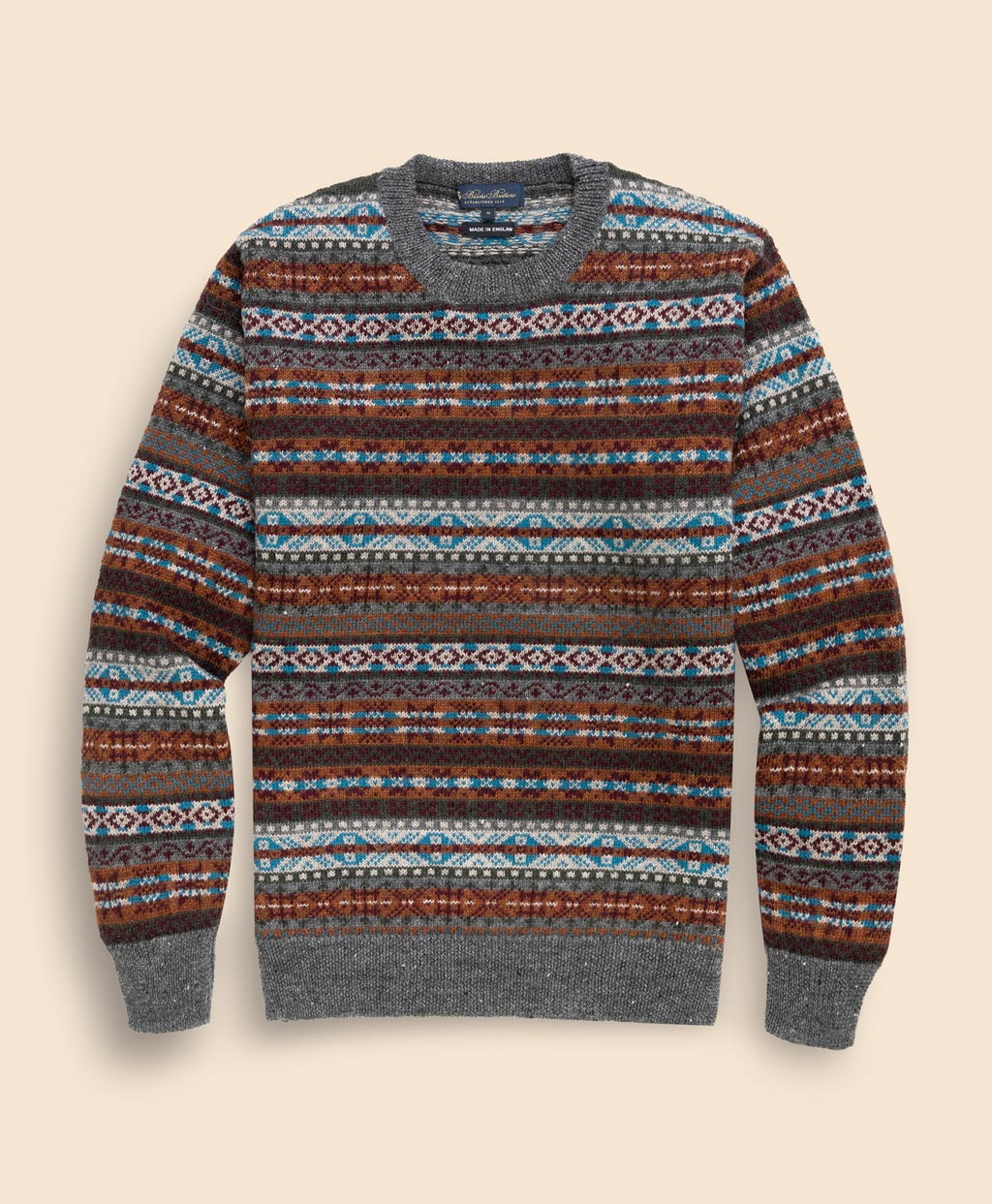 英国製のウール糸を手作業で編み上げたフェアアイル柄クルーネックセーター