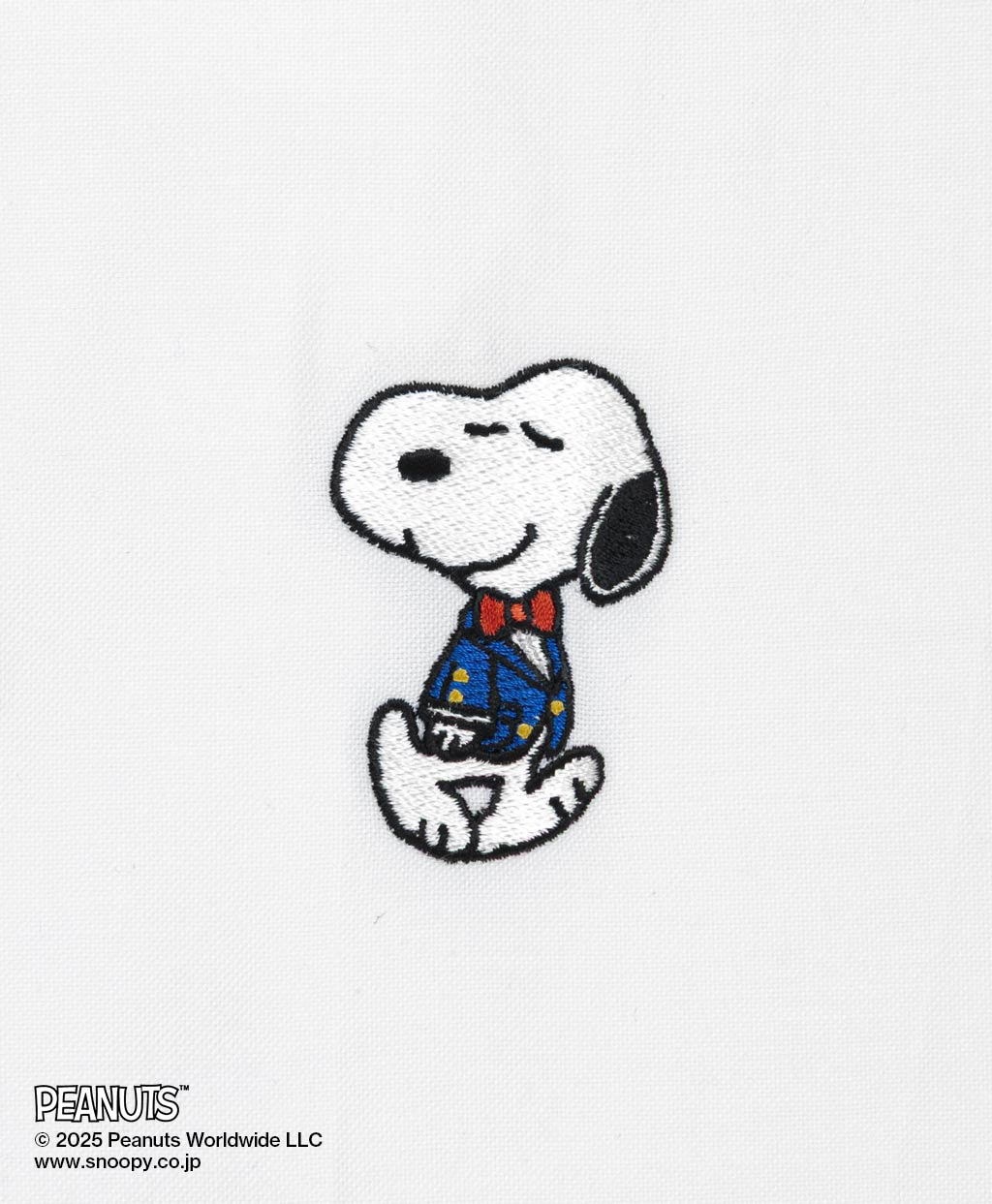 定番の7ボタンのボタンダウン(ポロカラー)シャツに、3釦段返りブレザーと赤いボウタイでおめかしをしたスヌーピーの刺繍をあしらいました。1900年に誕生し、125周年を迎えるボタンダウンシャツは、ブルックス ブラザーズの歴史を語るうえで欠かせない一枚です。