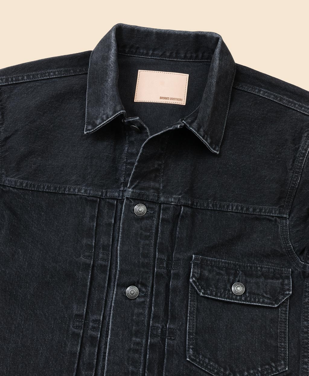 左胸にのみ配されたフラップ付きポケットや背面のシンチバック(尾錠)、着丈が短く身幅が広めのボックスシルエットなど、1930年代頃に労働者向けワークウェアとして登場した初期のディテールを踏襲しました。素材にはハリがあり無骨でタフな風合いのブラックデニム生地を使用。ブルーデニムと比較してモダンな印象のマットなブラックを採用することで綺麗めのトラウザーズにもマッチする大人のワードローブに馴染みやすい一着に。着込むほどにアタリや色落ちといった経年変化を楽しめます。