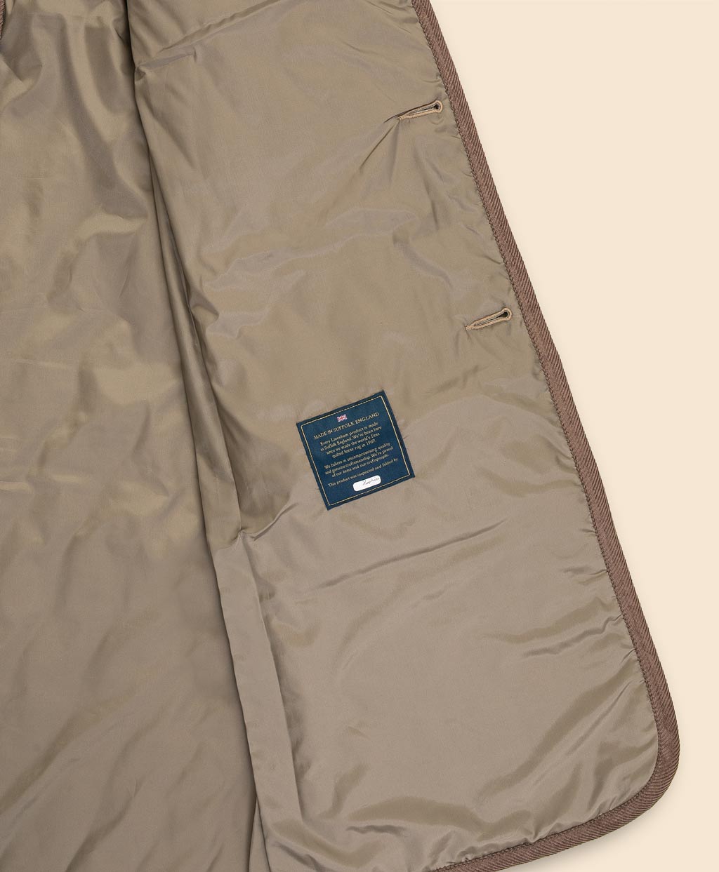 ■LAVENHAM(ラベンハム):1969年にイギリス・サフォーク州のラベンハムにて、エリザベス女王の女官として仕えた経歴を持つミセス・エリオットにより創業。ナイロンキルティングを用いたホースブランケット(馬用の毛布)の製造からスタートし、その後同様のキルティングを用いた乗馬用のジャケットを開発。キルティングジャケットという分野を確立し、その礎を築きました。裁断・縫製の前の段階となるキルティング工程から全行程を一貫してイギリス国内の自社工場で行う体制は、英国ブランドの中でラベンハムだけが持つ大きな強みです。