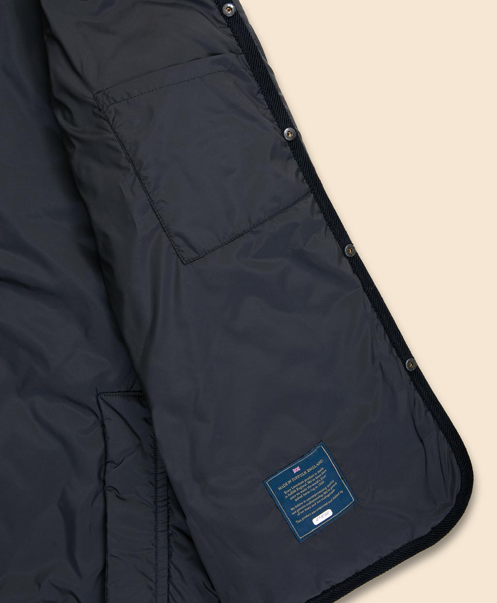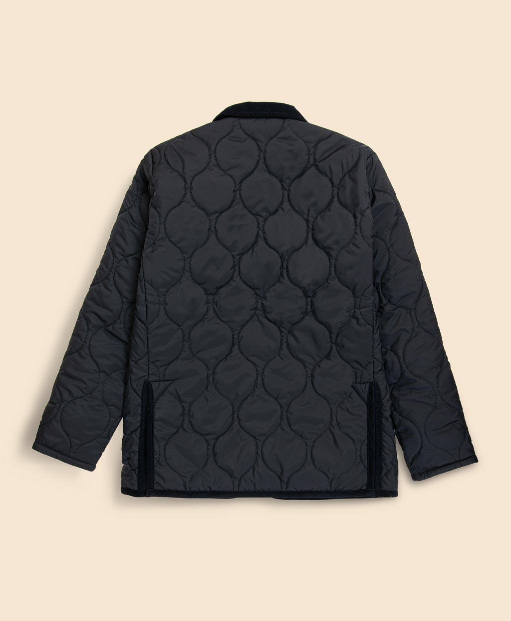 クラシックな雰囲気を持ちながらも、身幅や肩幅にゆとりを持たせ袖幅や襟はコンパクトに調整した現代的なデザインの定番モデル「デンハム」。キルトパターンを伝統的なダイヤモンドキルティングからミリタリーウェア由来のオニオンキルティングへ変更し、やや無骨でタフなニュアンスをプラスしました。デイリーなカジュアルスタイルにはもちろんの事、着丈が長めに設定されているため通勤時にスーツの上から羽織っていただくのもおすすめです。秋冬から春先まで活躍する、汎用性の高いアウターウェアです。