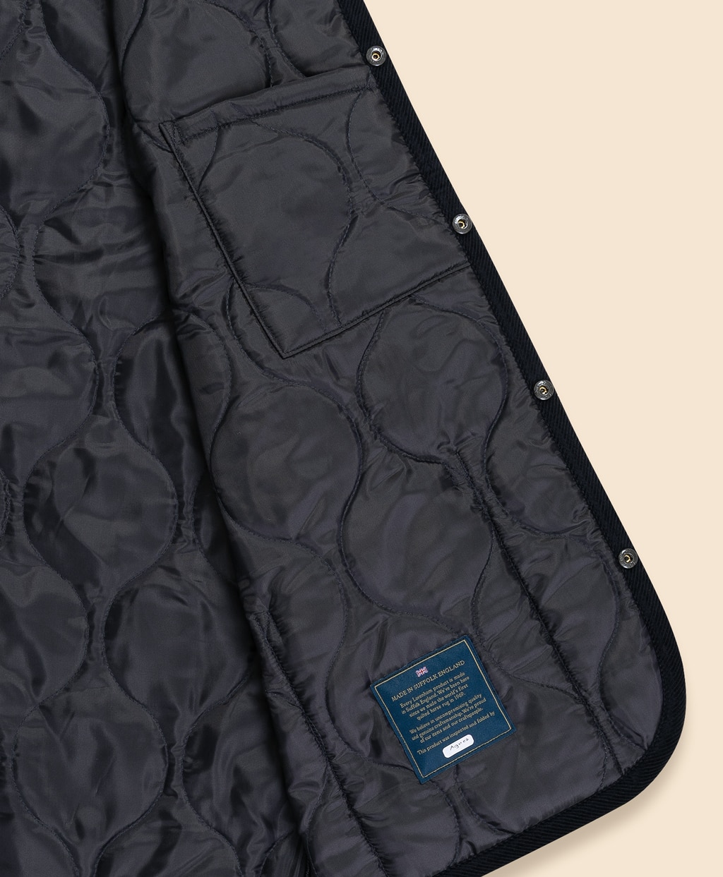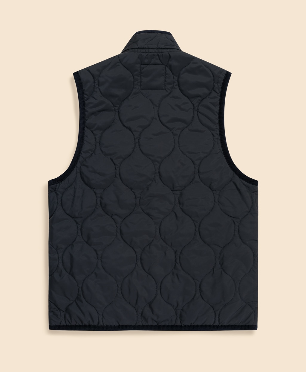ラベンハムのロングセラーアイテムである、スタンドカラーのクラシックジレ(ベスト)「ミックフィールド」。キルトパターンを伝統的なダイヤモンドキルティングからミリタリーウェア由来のオニオンキルティングへ変更し、無骨でタフなニュアンスをプラスしました。厚手のセーターやスウェットをインナーにしても窮屈さを感じにくい、ゆったりとしたサイズ感。アウターとしてはもちろんのこと、ジャケットやコートのインナーとしても使い勝手がよく、幅広いコーディネートが楽しめます。