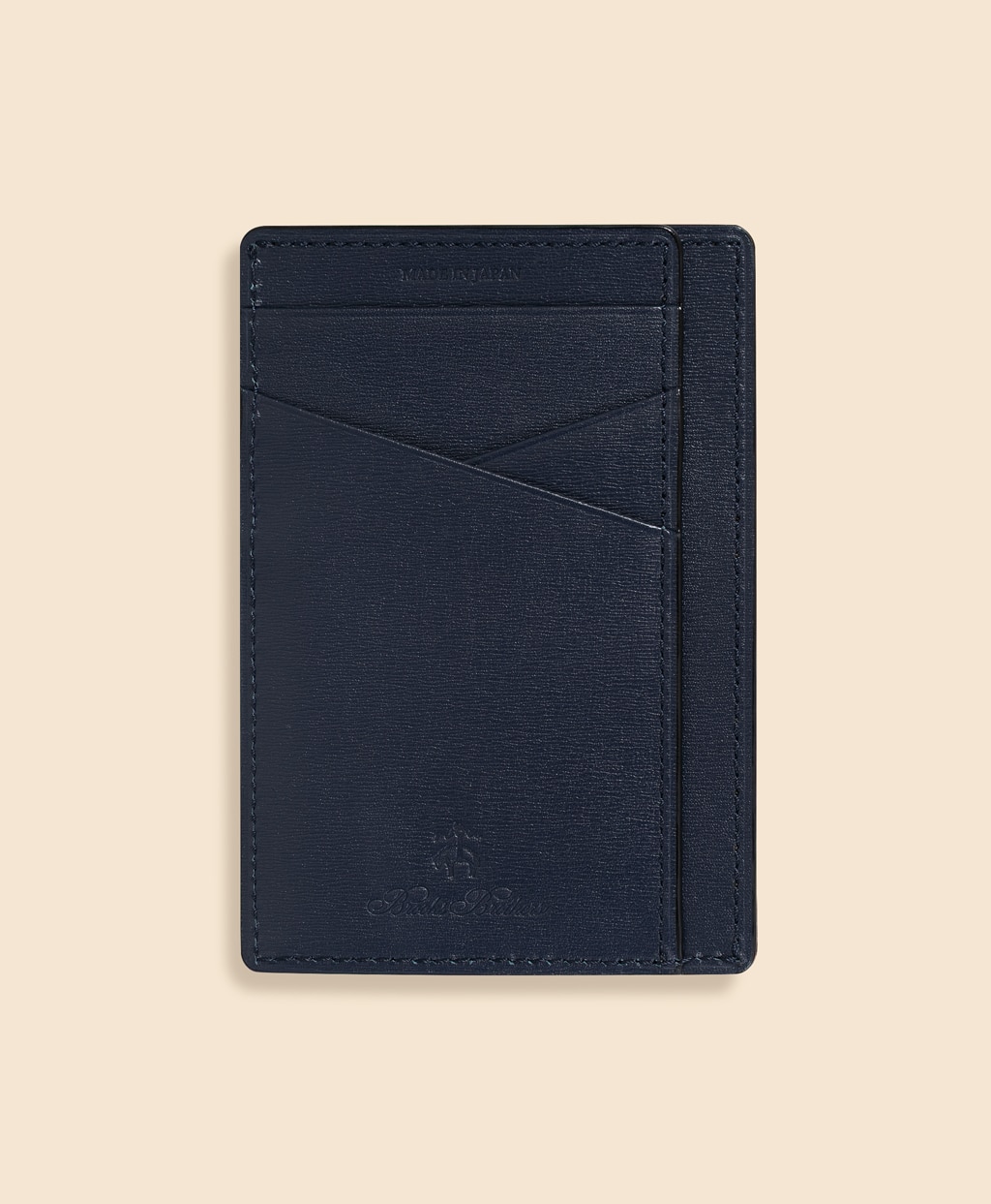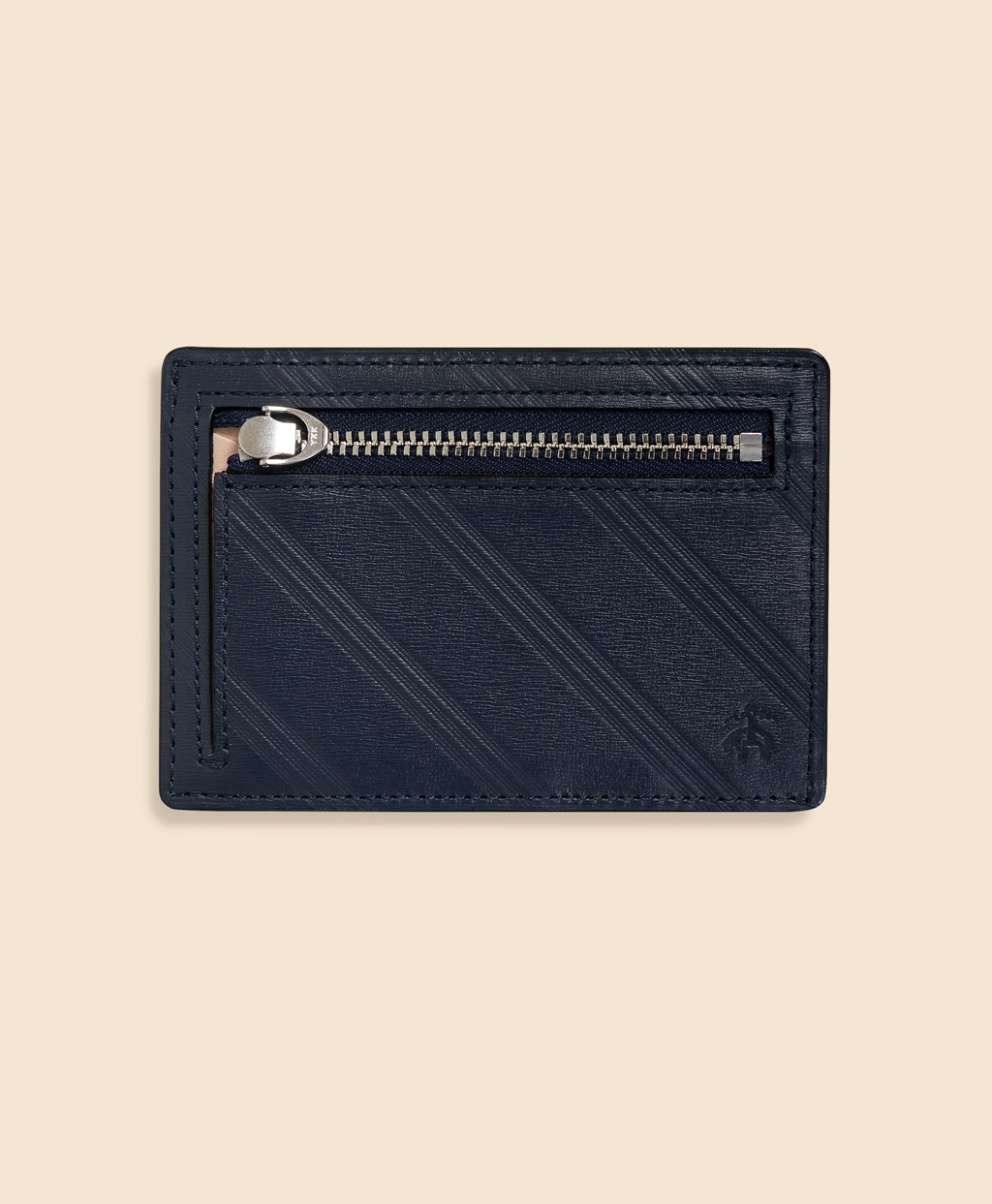 丈夫で耐久性の高いカウレザーにブルックス ブラザーズのシグネチャーストライプであるBB#1(ナンバーワン)ストライプを型押ししました。ジャケットの内ポケットに収まりやすいスマートなサイズながらカードスロットの他にファスナー付きのコンパートメントも備えており、外出をスマートにお供します。