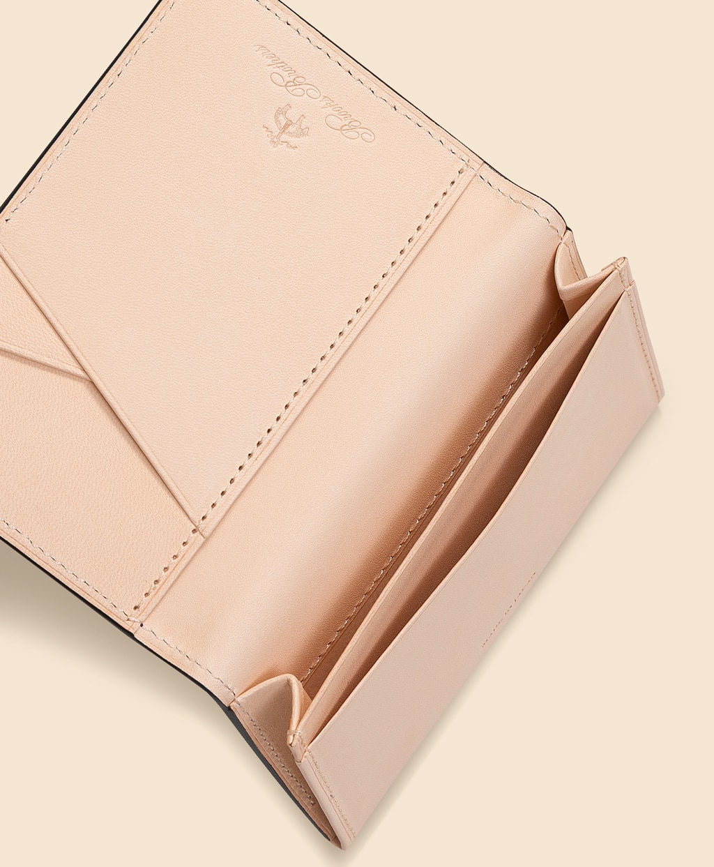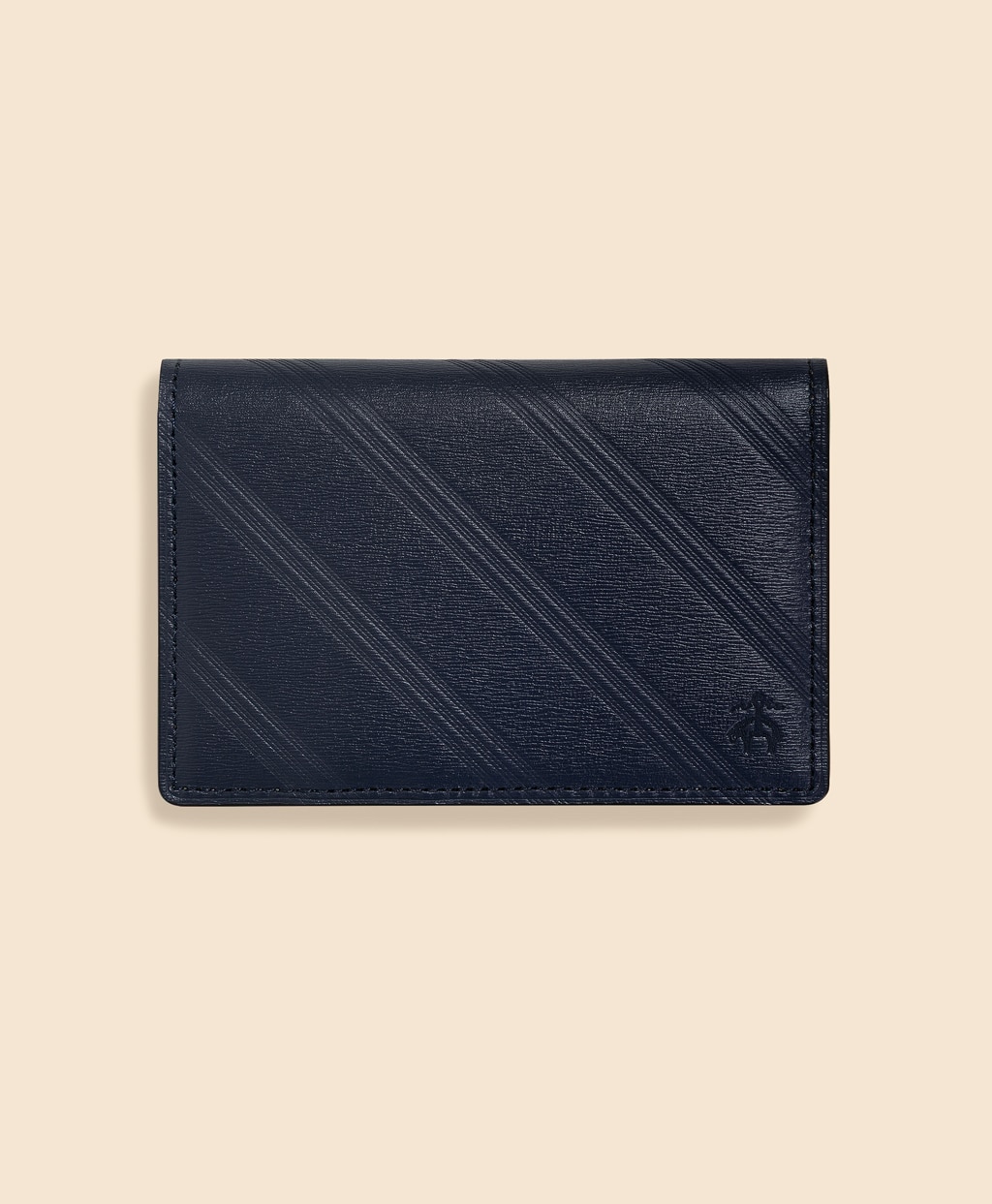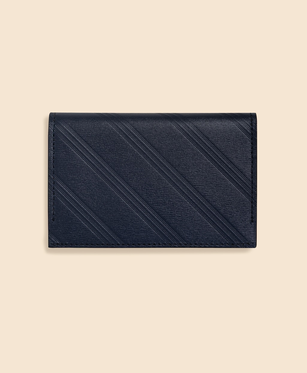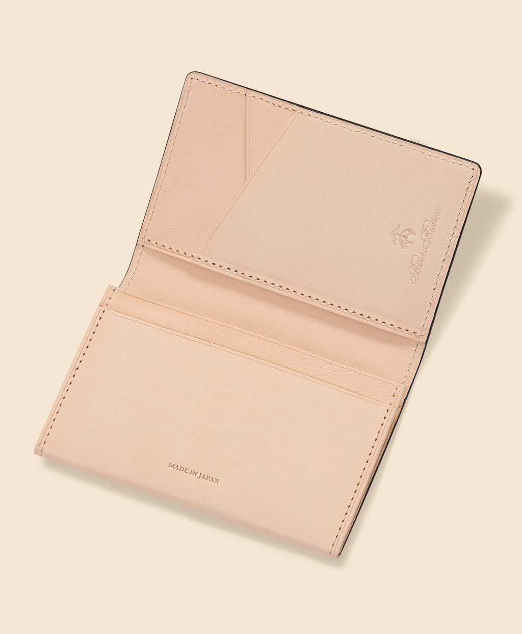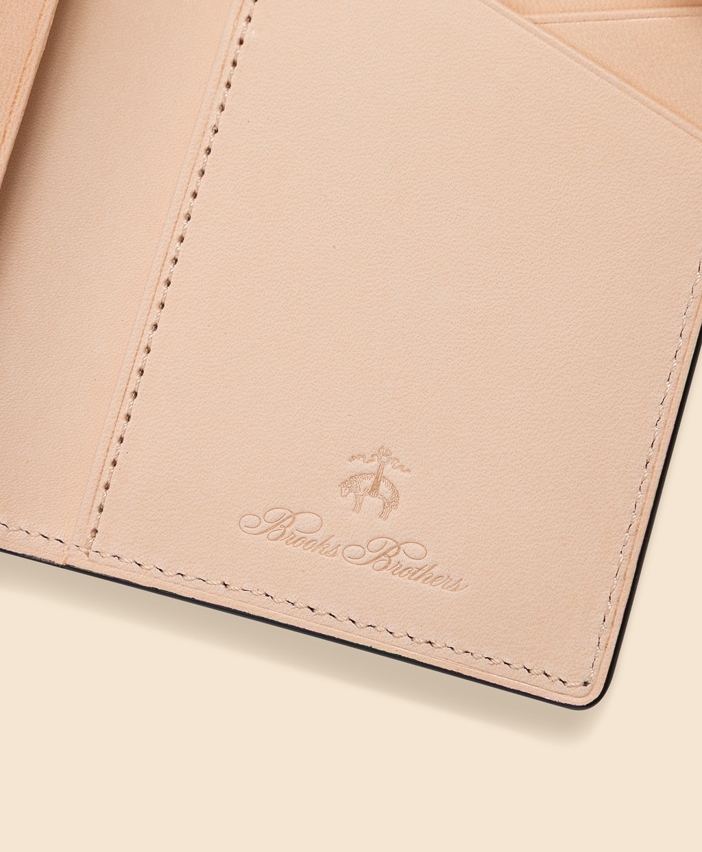 丈夫で耐久性の高いカウレザーを用いたカードケースです。外側にはブルックス ブラザーズのシグネチャーストライプであるBB#1(ナンバーワン)ストライプを型押ししました。コンパクトで表面に飾りなどの無いフラットな形状は、ポケットに入れても服のシルエットに響きにくく、出し入れの際にも引っ掛かりの無い使いやすさも兼ね備えています。使い込むほどに愛着の増す、上質でタイムレスなデザインのカードケースはプレゼントにもお薦めです。